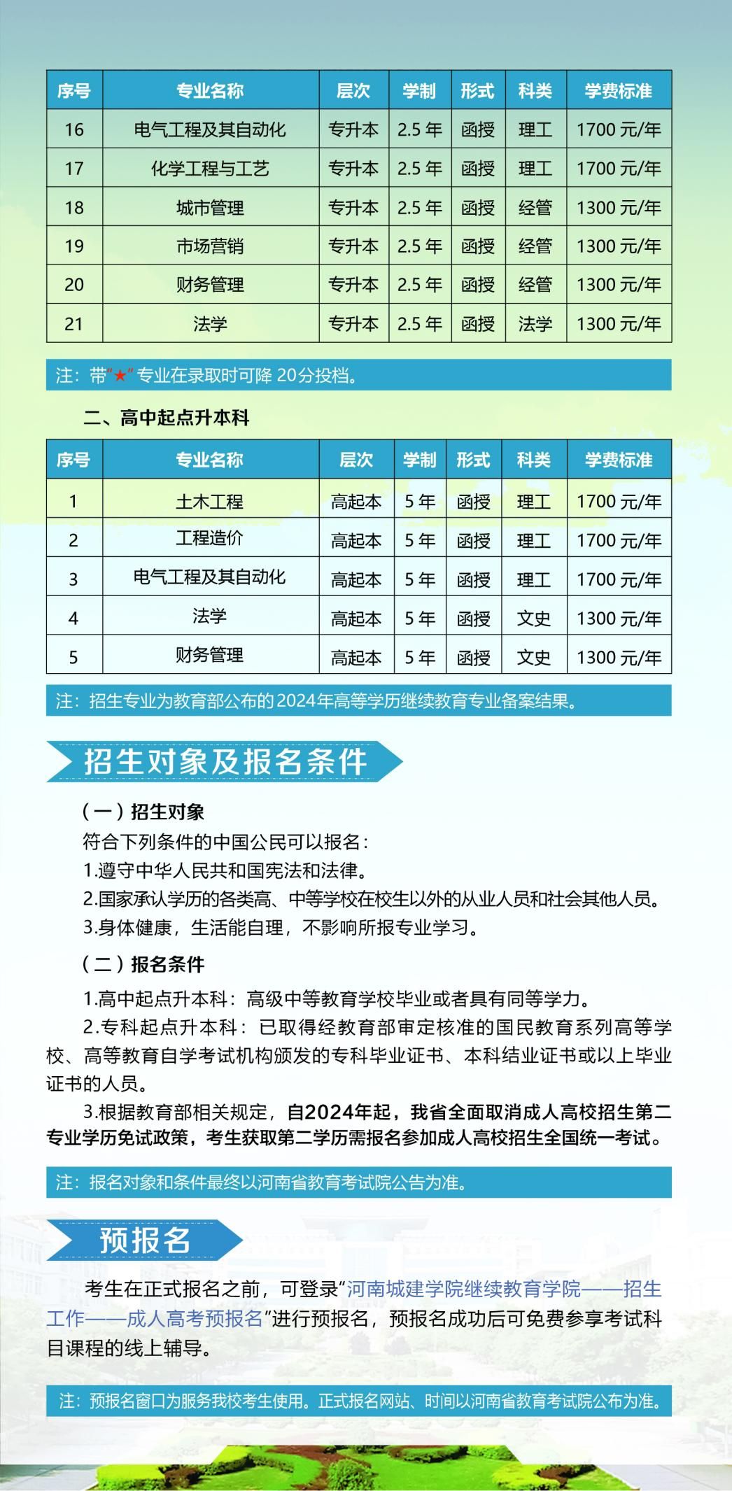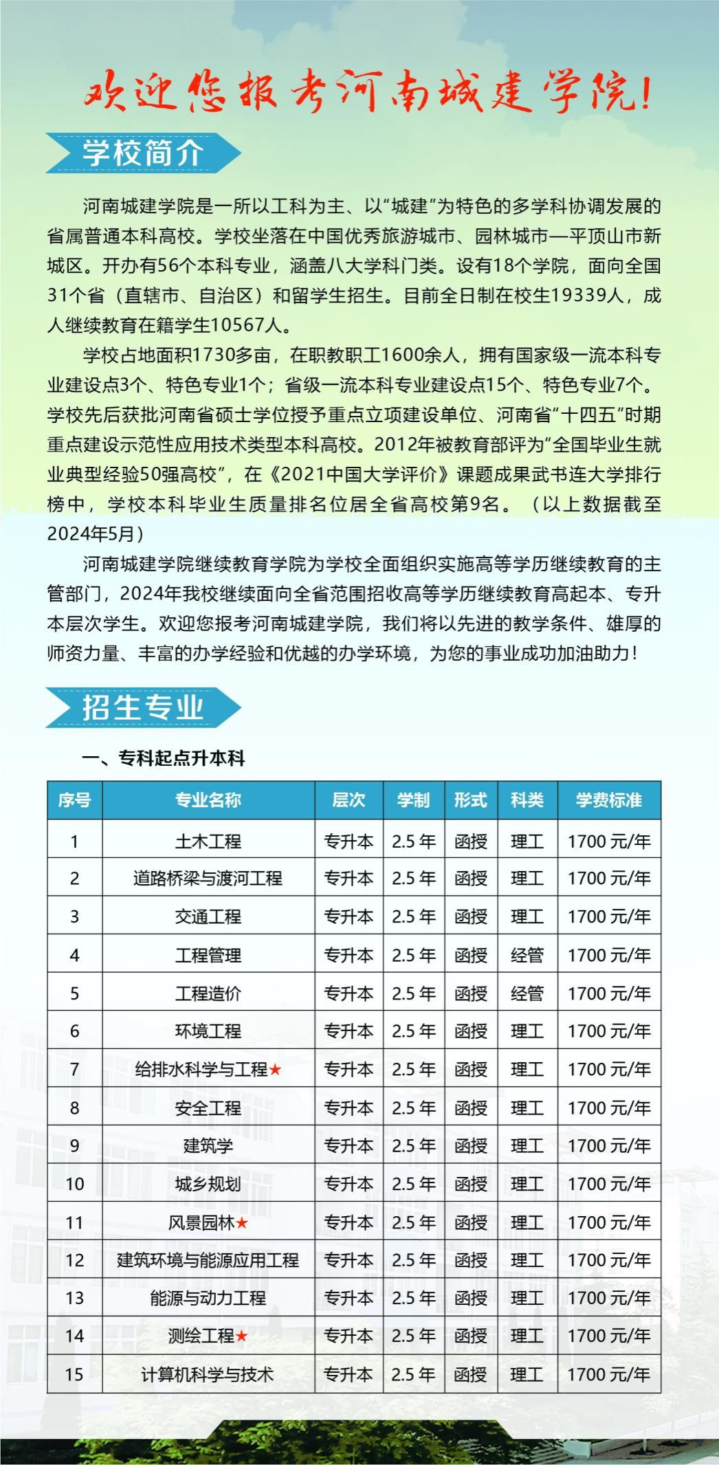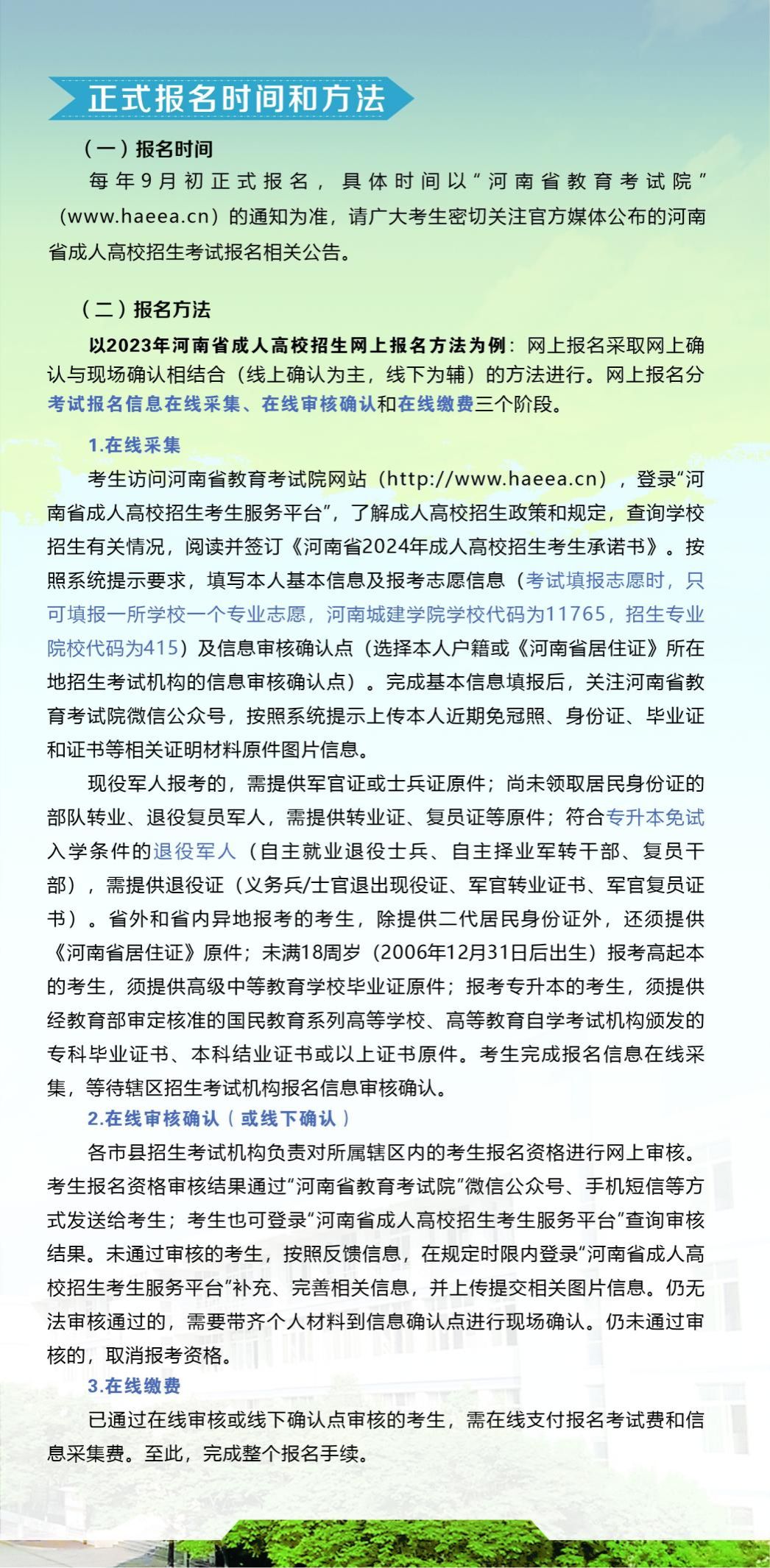 四、EMC易倍官方网站高等学历继续教育招生信息以河南省教育厅、河南省教育考试院、EMC易倍官网发布的招生信息为准。2024年EMC易倍官方网站高等学历继续教育拟招专升本层次21个专业、高起本层次5个专业。(详见后附2024年招生简章)
