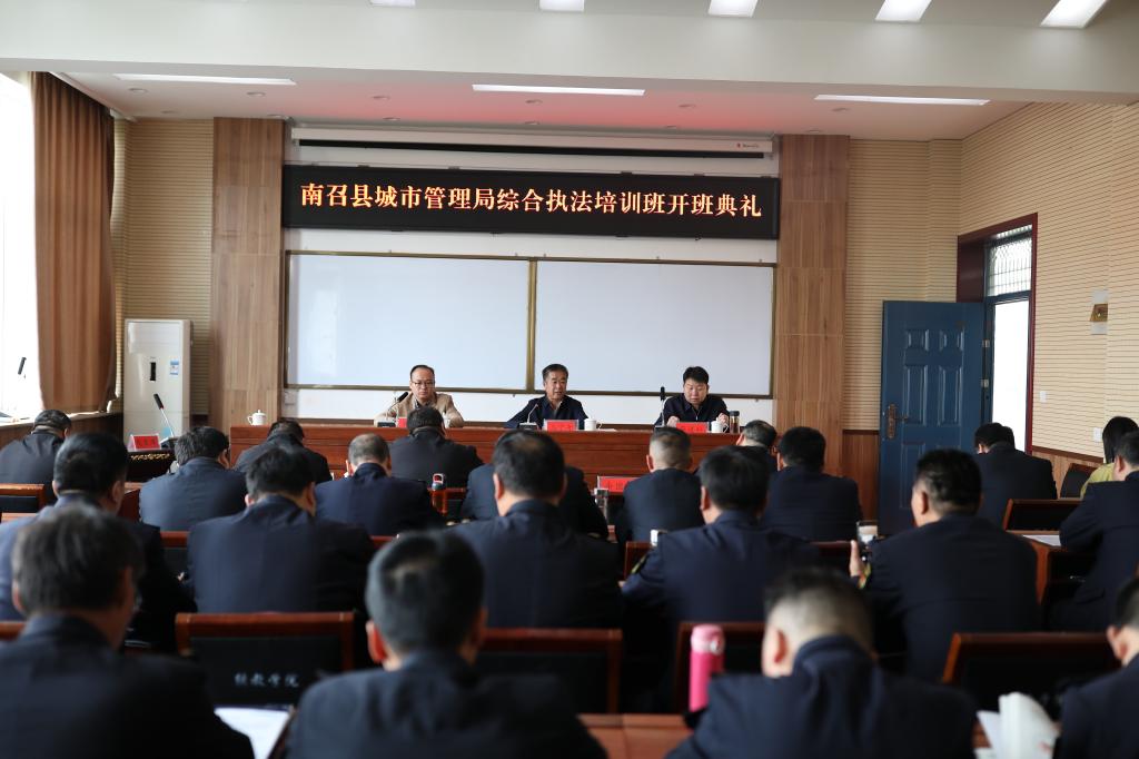 (通讯员:孙敬克)10月17日,南召县城市管理局综合执法培训班开班典礼在公司EMC易倍多媒体教室举行。南召县城市管理局局长张道科及其领导班子,公司EMC易倍经理马宁奇,南召县城市管理局中层干部50余名学员,公司EMC易倍相关同志参加了开班典礼。会议由EMC易倍副经理王晓涛主持。