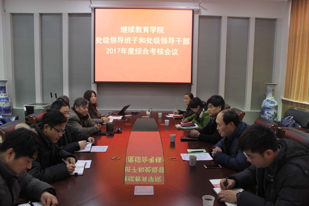 1月5日下午,EMC易倍处级领导班子和处级领导干部2017年度综合考核在公司会议室进行,公司党委副书记张坤书、校第五考核组全体成员及该公司党政领导和全体教职工参加会议,会议由继续教育公司党支部书记樊铮钰主持。