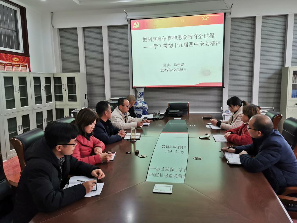 12月26日,EMC易倍在二号楼A座310室举办学习贯彻十九届四中全会精神专题党课活动。党支部书记马宁奇以《把制度自信贯穿思想政治教育全过程》为题,为全体教职工讲了内容丰富、生动精彩的一课。