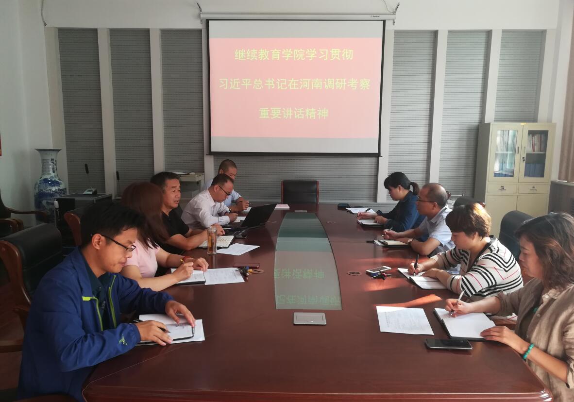 马宁奇指出,在祖国70华诞即将来临之际,在“不忘初心、牢记使命”主题教育如火如荼开展之时,习近平总书记亲临河南考察调研工作,充分体现了总书记和党中央对河南工作的高度重视,对河南广大干部群众的关心厚爱,对我省发展具有重大的里程碑意义。我们要站在增强“四个意识”、坚定“四个自信”、做到“两个维护”的高度,切实把总书记重要讲话精神转化为对党绝对忠诚的政治信仰,把总书记指示要求转化为推动公司成人教育事业高质量发展的巨大动力。他要求全体党员和教职工要把学习总书记重要讲话精神与正在开展的“不忘初心、牢记使命”主题教育结合起来,要带着信仰学、带着责任学、带着感情学,要推动学习贯彻落实习近平新时代中国特色社会主义思想往深里走、往心里走、往实里走,并将学习转化为干好本职工作的具体行动,为公司建设和发展做出积极贡献。